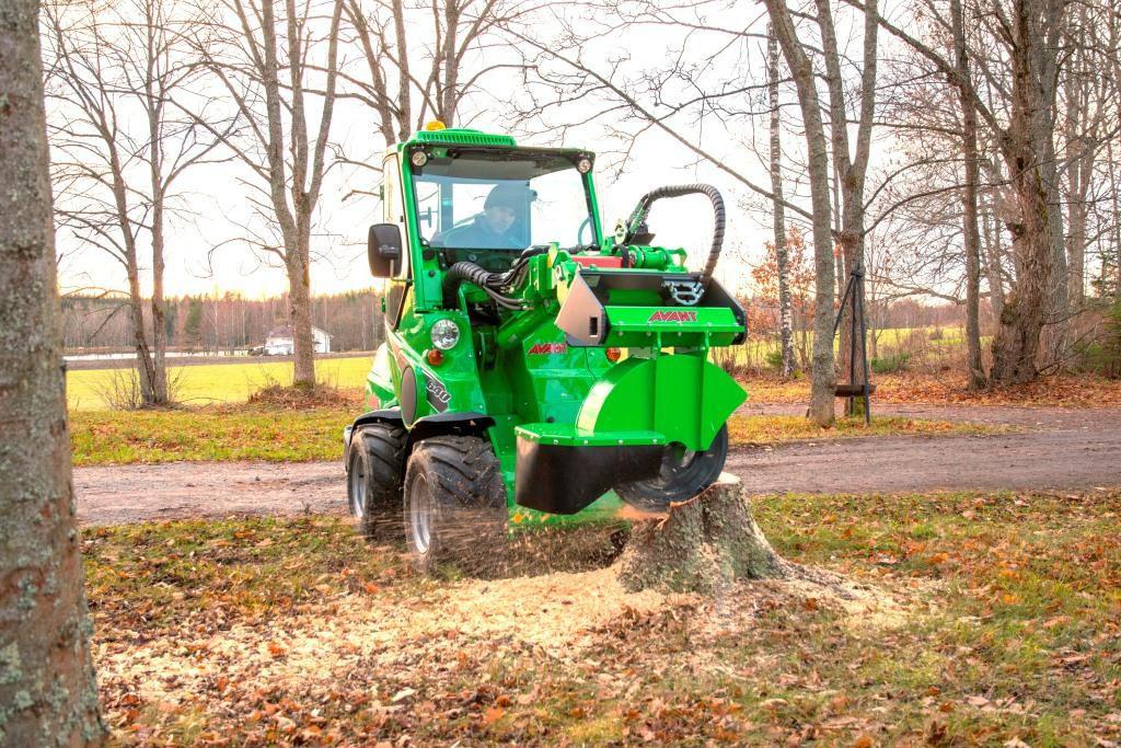 Die Baumstumpffräse ist ein effizient und einfach zu bedienender Baumstumpfentferner. Das quer zum Lader montierte Schneidrad wirft den Holzabfall zur rechten Seite aus so landet nichts auf Fahrer oder Lader. Die Montage des Schneidrades quer zum Lader garantiert eine hervorragende Sicht auf das Arbeitsumfeld.